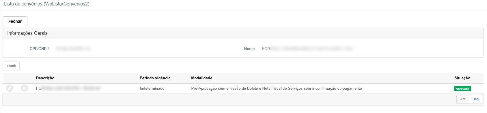 - Modalidade – Define a forma de aceitação do convênio (ex.: Pré-aprovação com emissão de boleto e nota fiscal sem confirmação de pagamento)