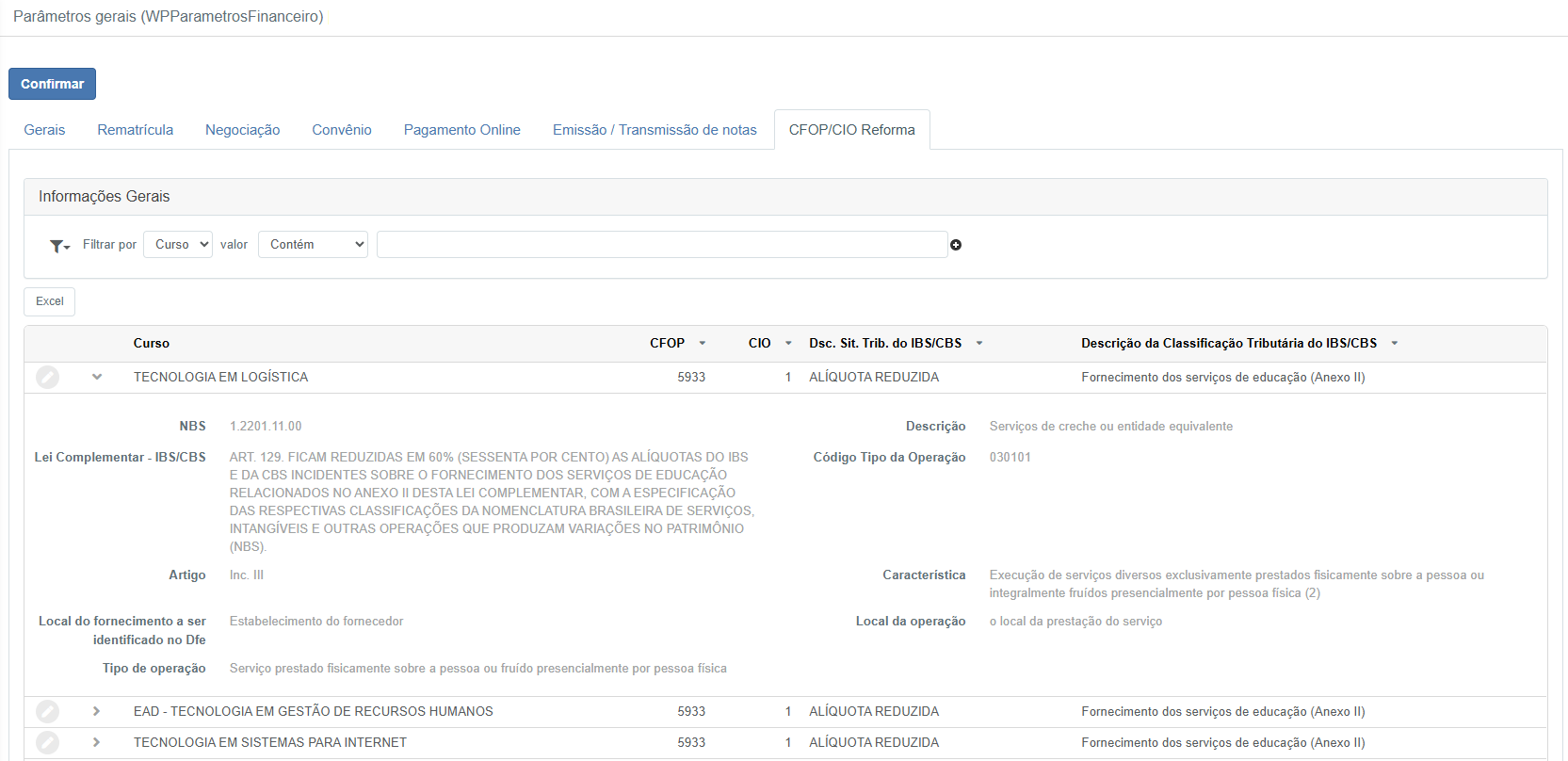 - Descrição da Classificação Tributária – Ex.: Fornecimento dos serviços de educação (Anexo II)