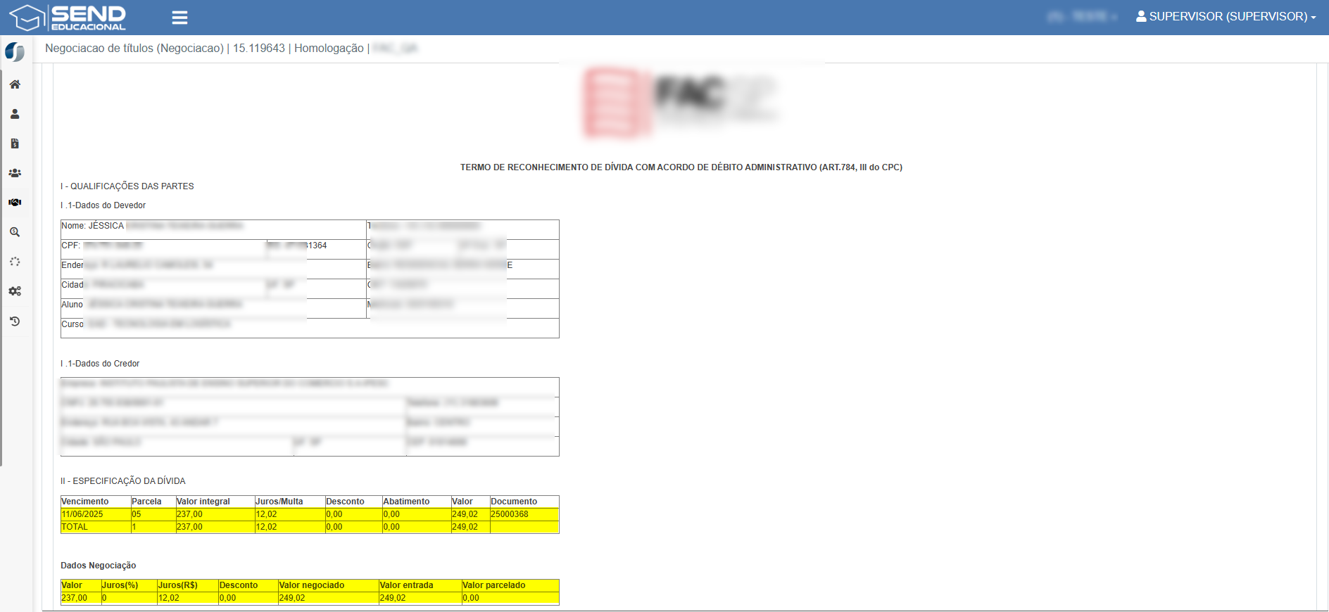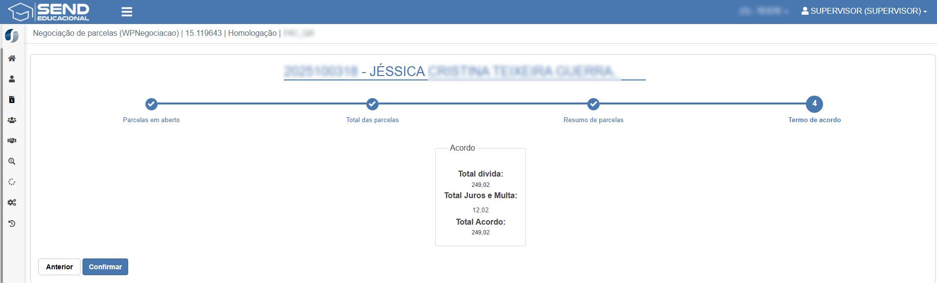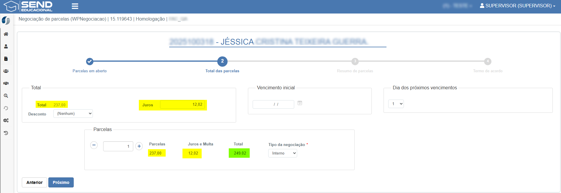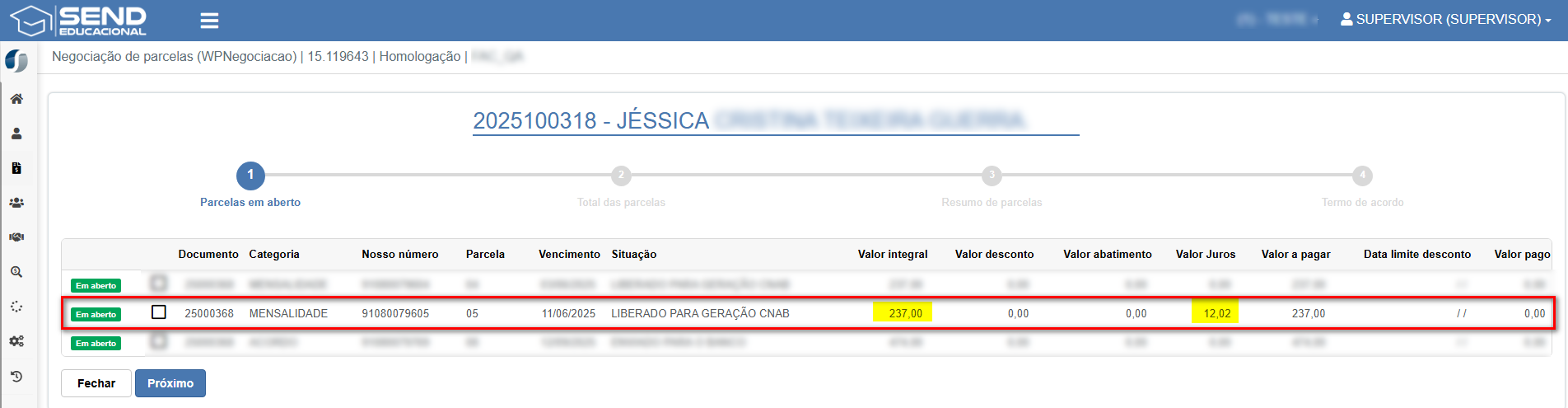 - Ao realizar acordo de negociação, agora é possível verificar os valores de juros separadamente do valor integral da parcela.