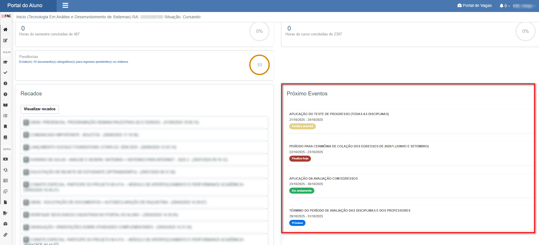 Inicio (Portal do aluno - Pendências)
