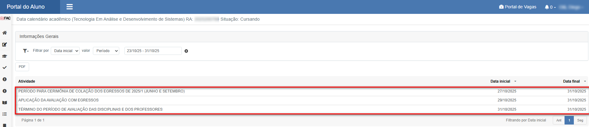 Impressão em PDF no "Portal do aluno";