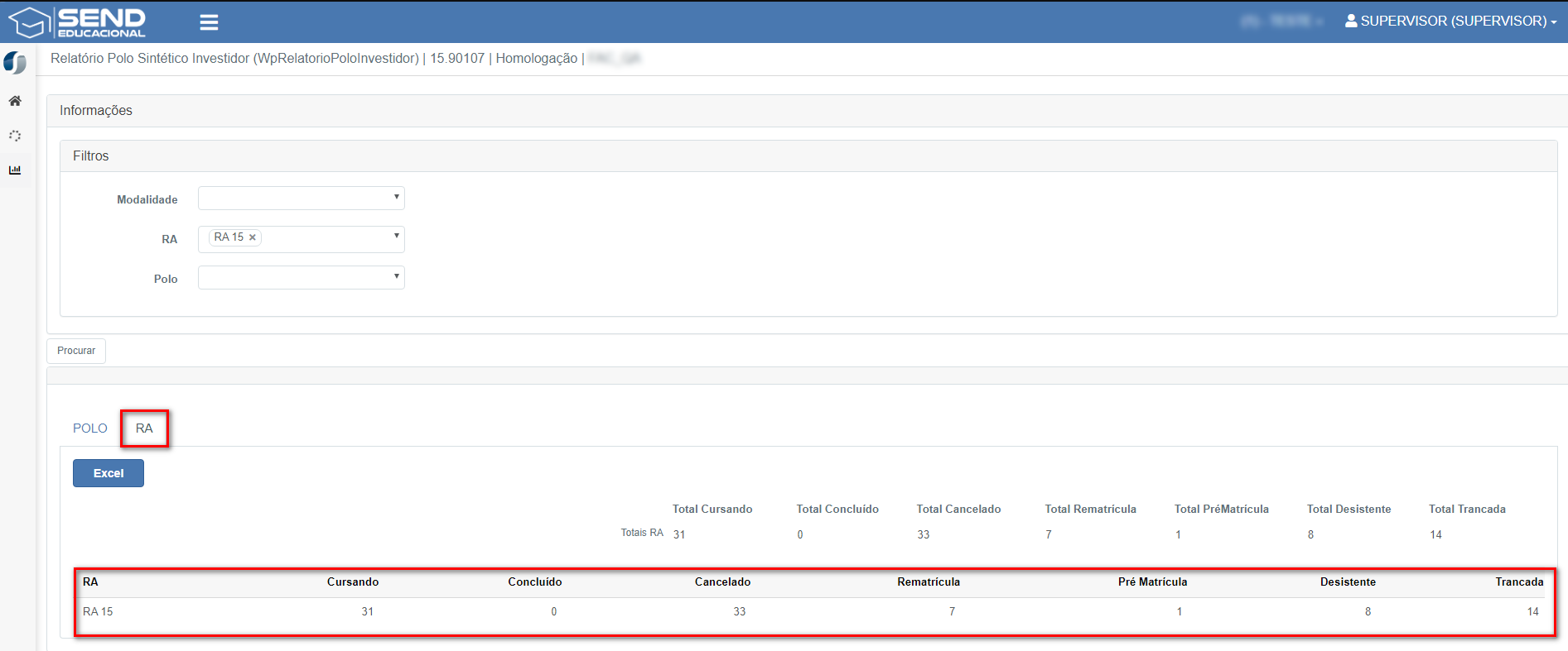 - Abas POLO/RA – Permite alternar o agrupamento de exibição.
