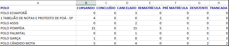 - Polo – Aplica o recorte de resultados por unidade/polo de ensino.
