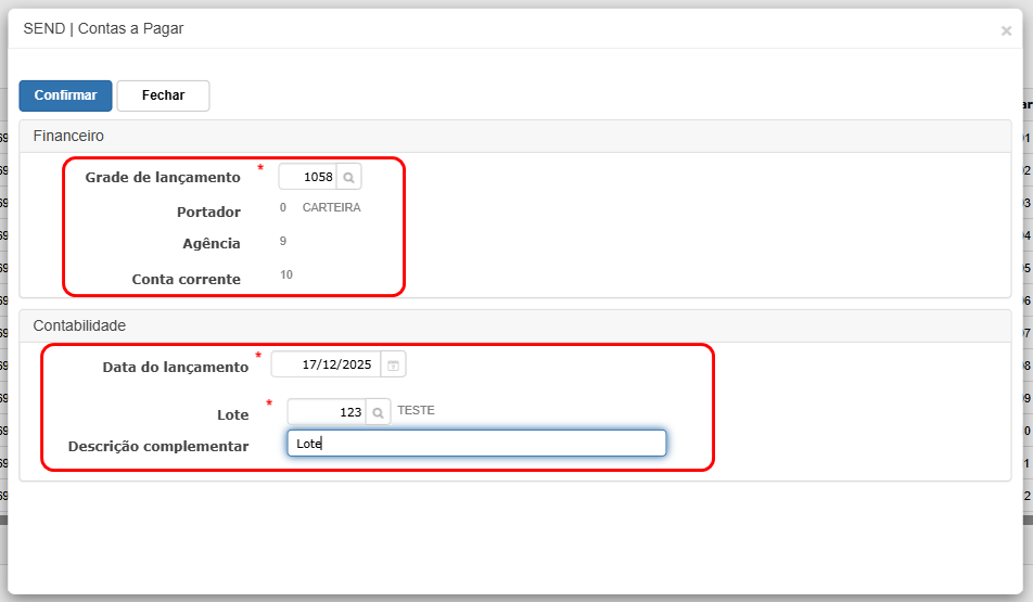• Grupo financeiro – Classificação do gasto (obrigatório)