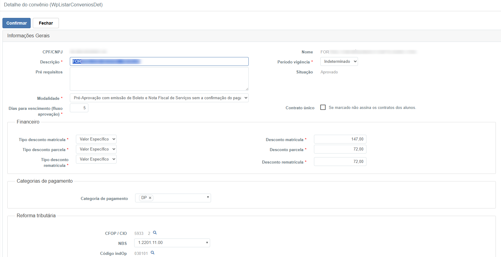 • Descrição – Nome comercial do convênio (Ex.: FORTRAL EAD GESTÃO - R$165,00)