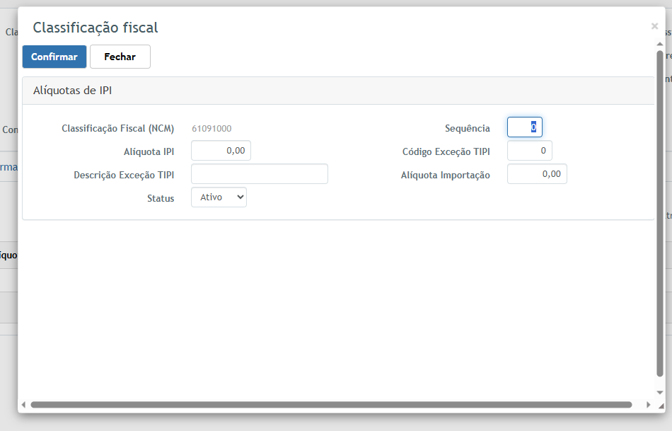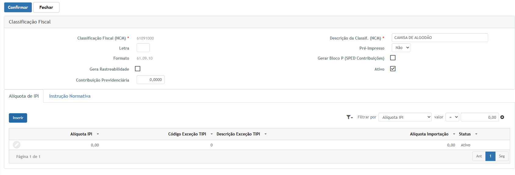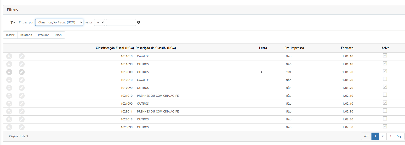 • Ativo – Disponibiliza o NCM para uso em produtos e notas fiscais