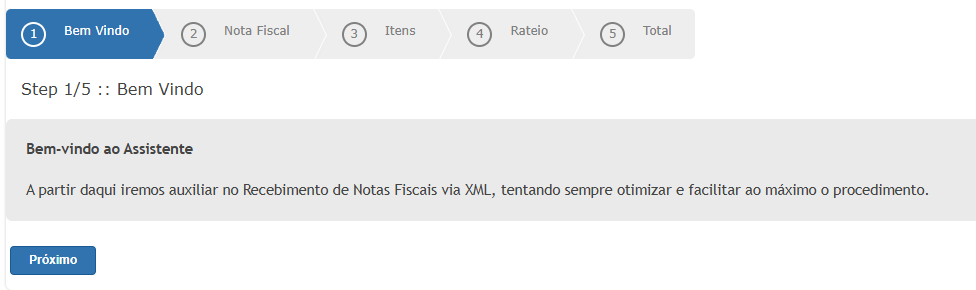 2) Assistente de Recebimento – Passo 1/5 :: Bem-vindo