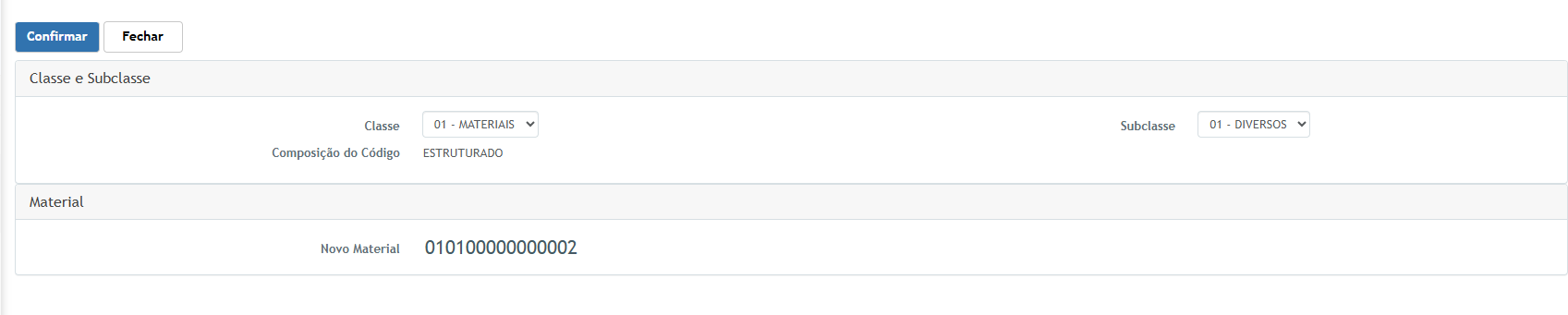Após o preenchimento, clique em Confirmar para gravar ou em Fechar para sair sem salvar.