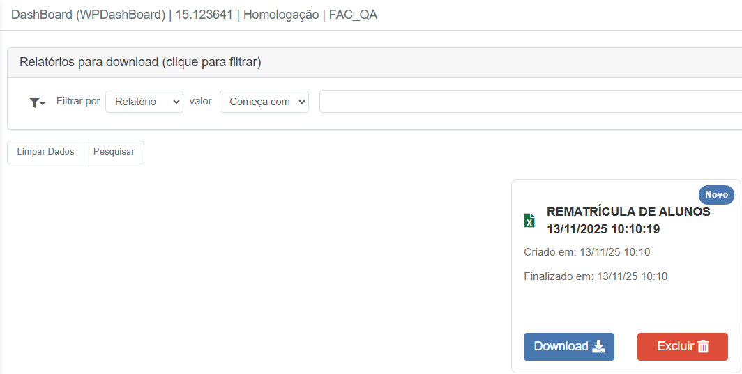 • Procurar – Atualiza a listagem conforme os filtros selecionados.
