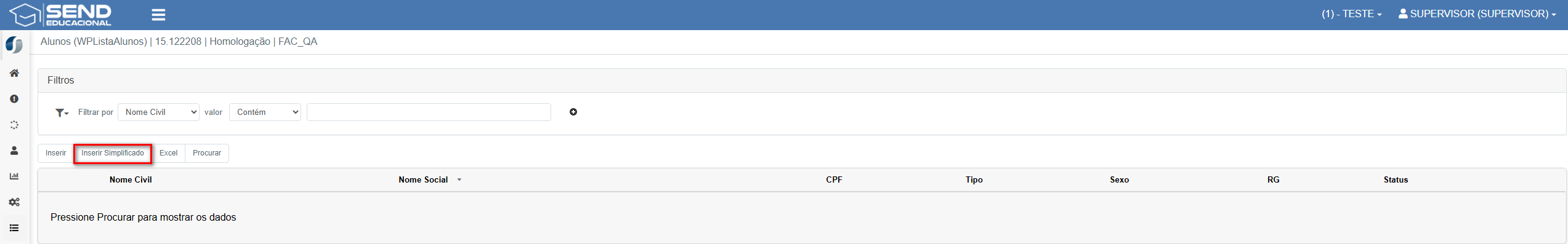 - Na Lista de Alunos, clique em Inserir Simplificado (ou Inserir para o completo).