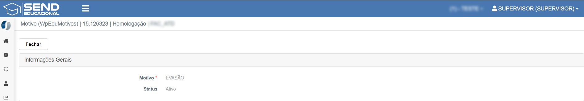 - Motivo – Justificativa cadastrada (Ex.: EVASÃO, SAÚDE, FINANCEIRO)